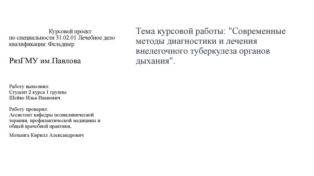 Курсовой проектпо специальности 31.02.01 Лечебное дело