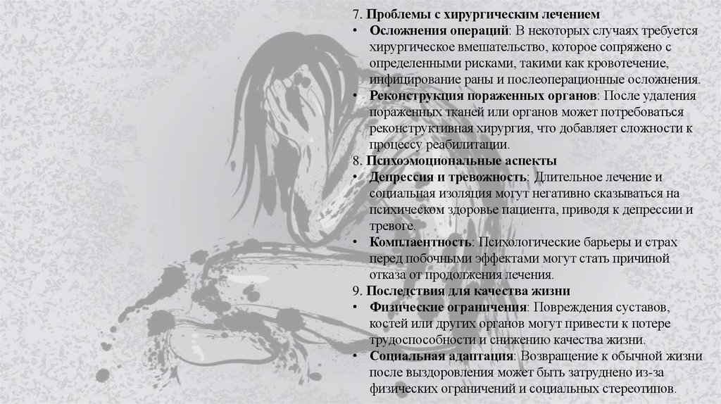 7. Проблемы с хирургическим лечением• Осложнения операций: В некоторых случаях требуется