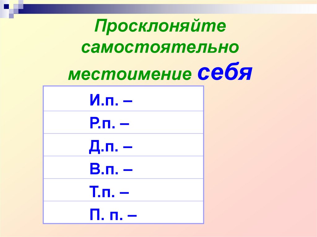 11. Просклоняйте самостоятельно местоимение себя