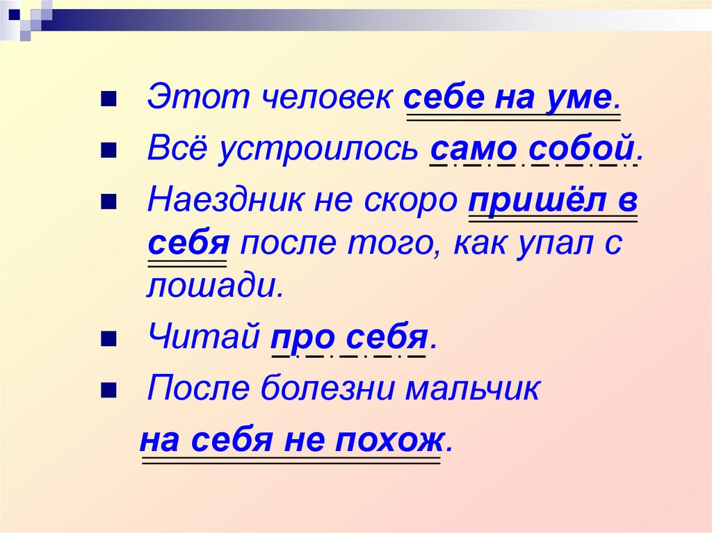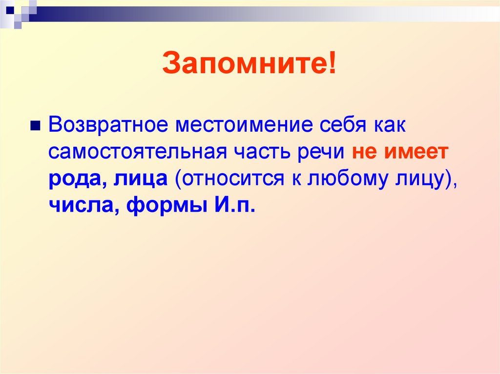 Возвратное местоимение себя каксамостоятельная часть речи не имеет