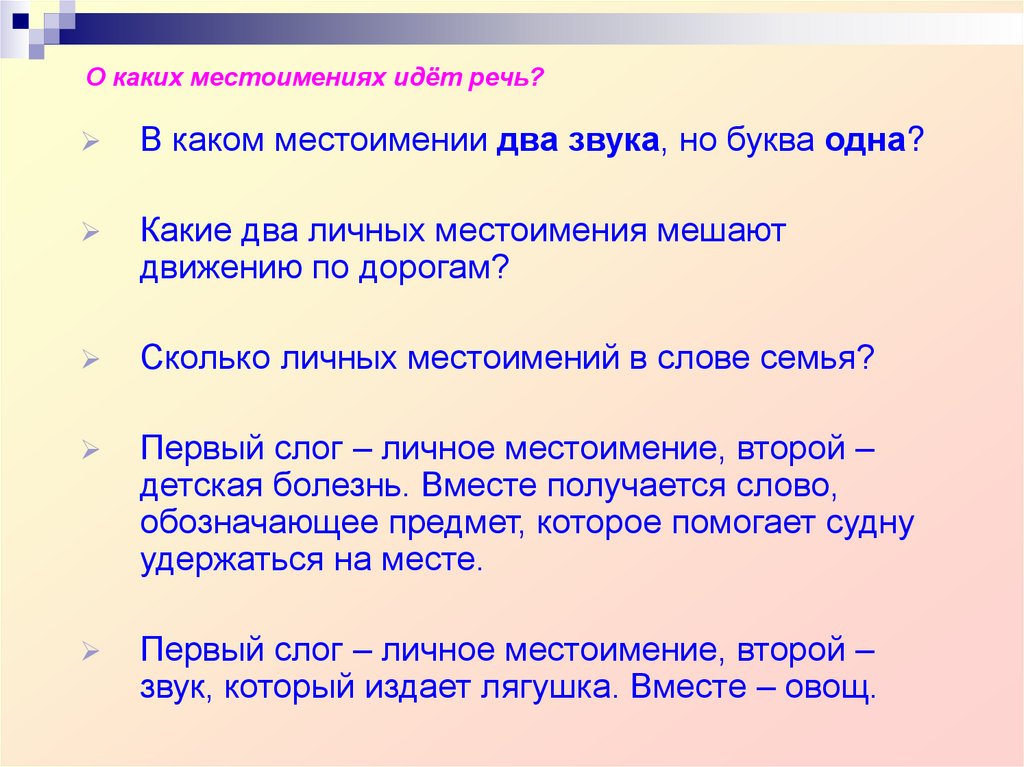 5. Отгадайте загадки, о каких местоимениях идёт речь?