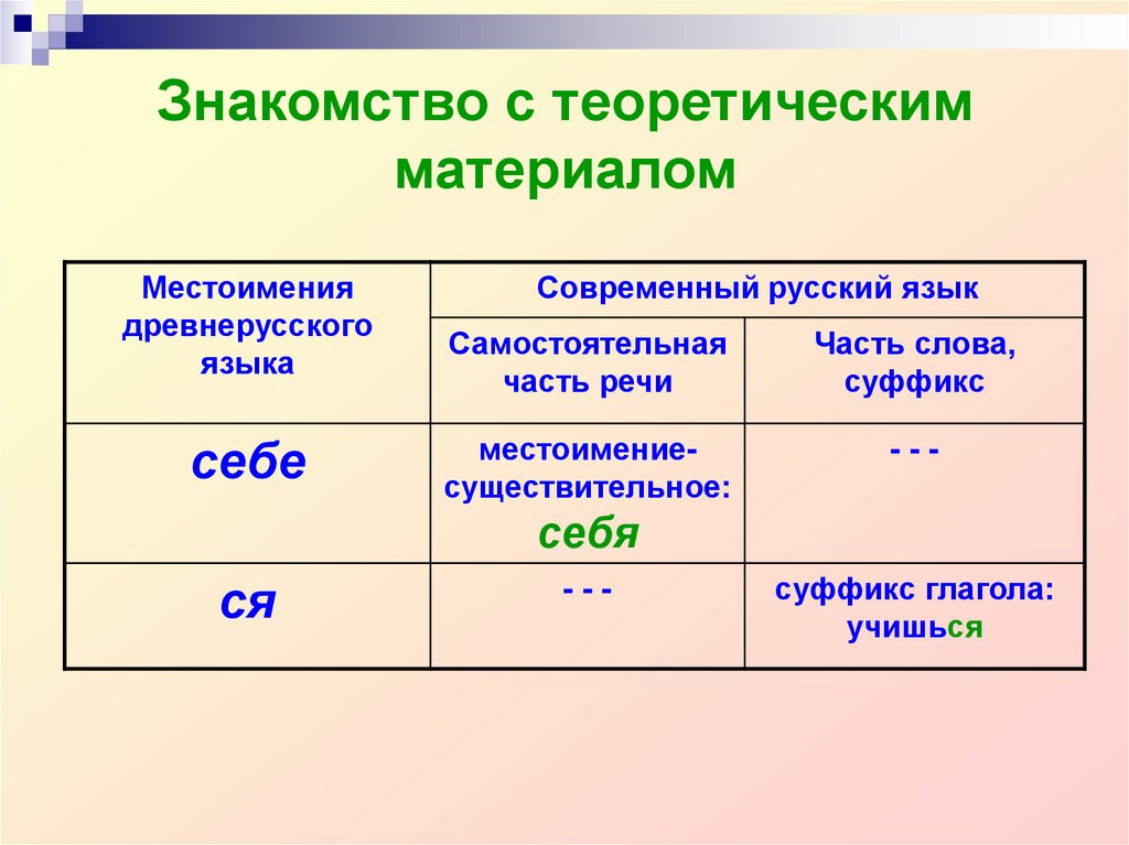 В древнерусском языке существовало две формывозвратного местоимения: себе (позднее себя) и