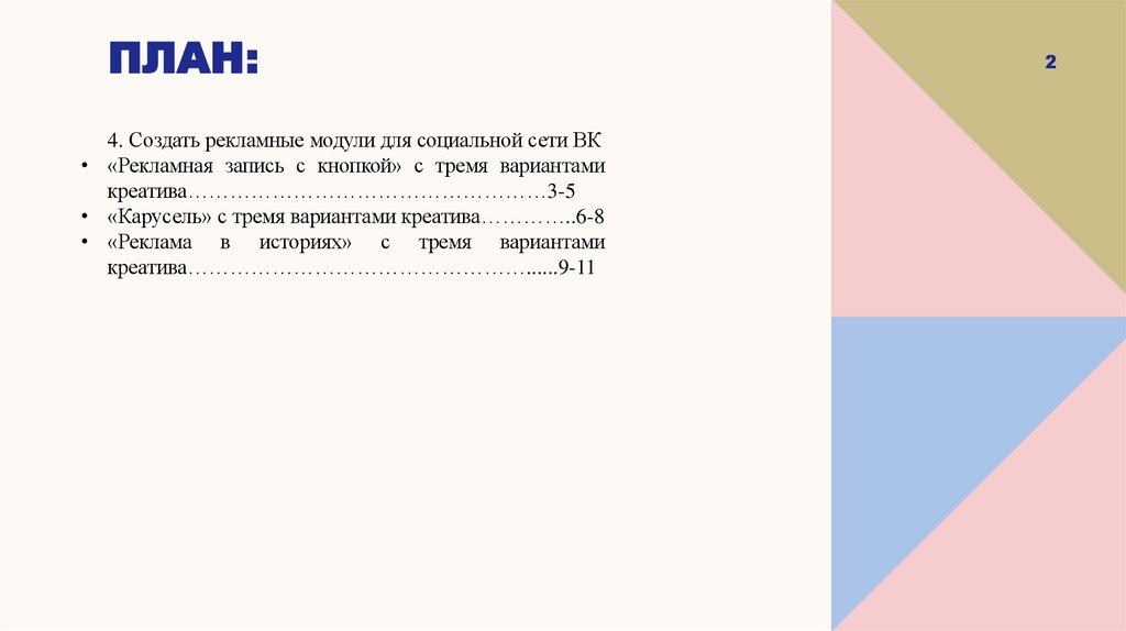 ПЛАН:4. Создать рекламные модули для социальной сети ВК