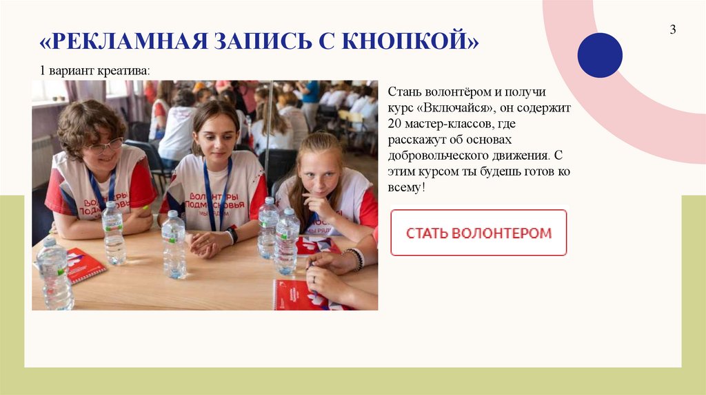 «РЕКЛАМНАЯ ЗАПИСЬ С КНОПКОЙ»3 вариант креатива: