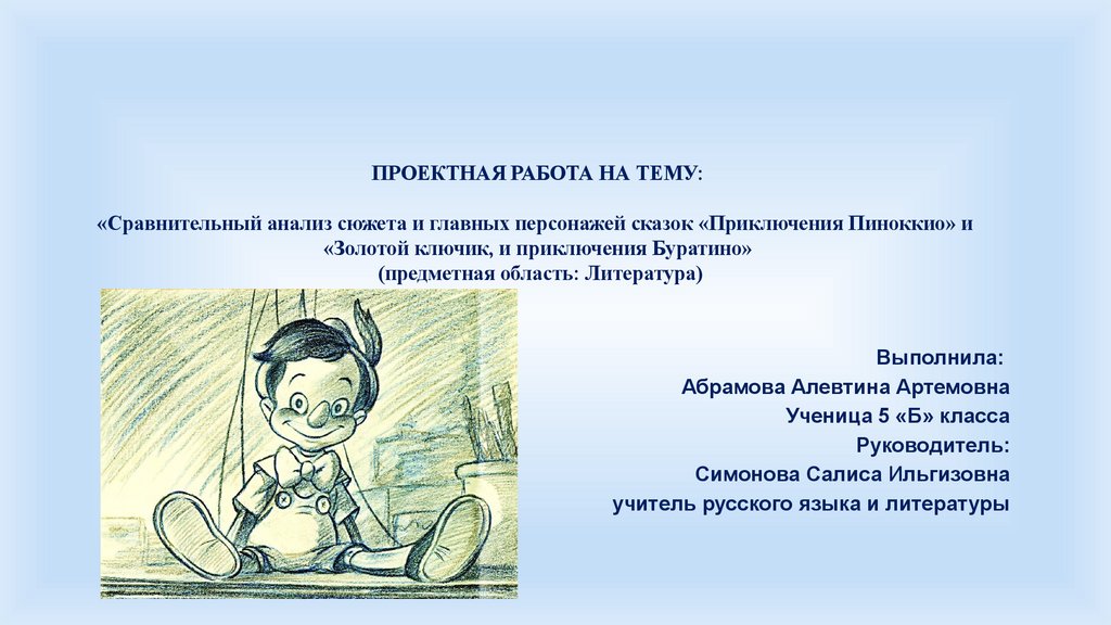 ПРОЕКТНАЯ РАБОТА НА ТЕМУ:«Сравнительный анализ сюжета и главных персонажей сказок «Приключения Пиноккио» и