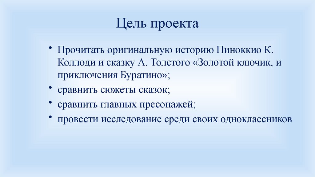 Цель проекта• Прочитать оригинальную историю Пиноккио К.