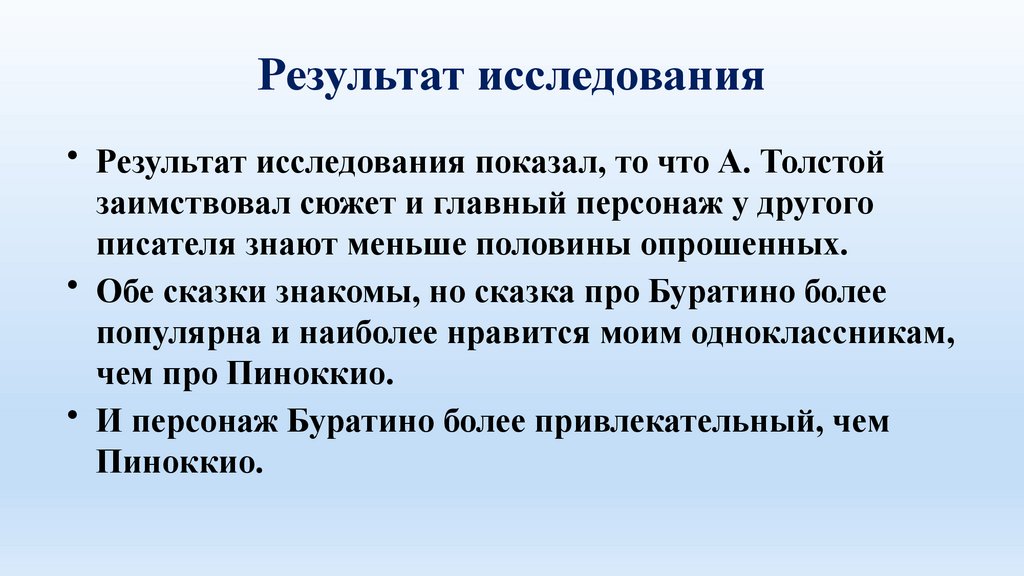 Результат исследования• Результат исследования показал, то что А. Толстой