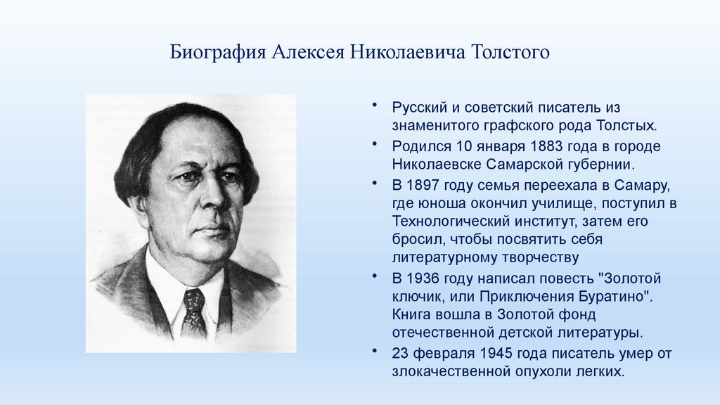 Биография Алексея Николаевича Толстого• Русский и советский писатель из