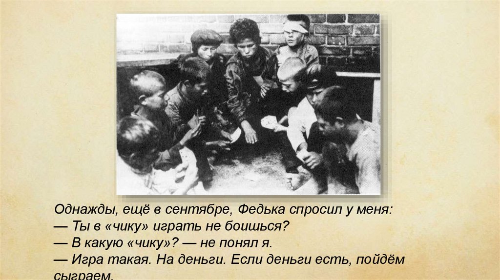 Однажды, ещё в сентябре, Федька спросил у меня:— Ты в «чику» играть не боишься?