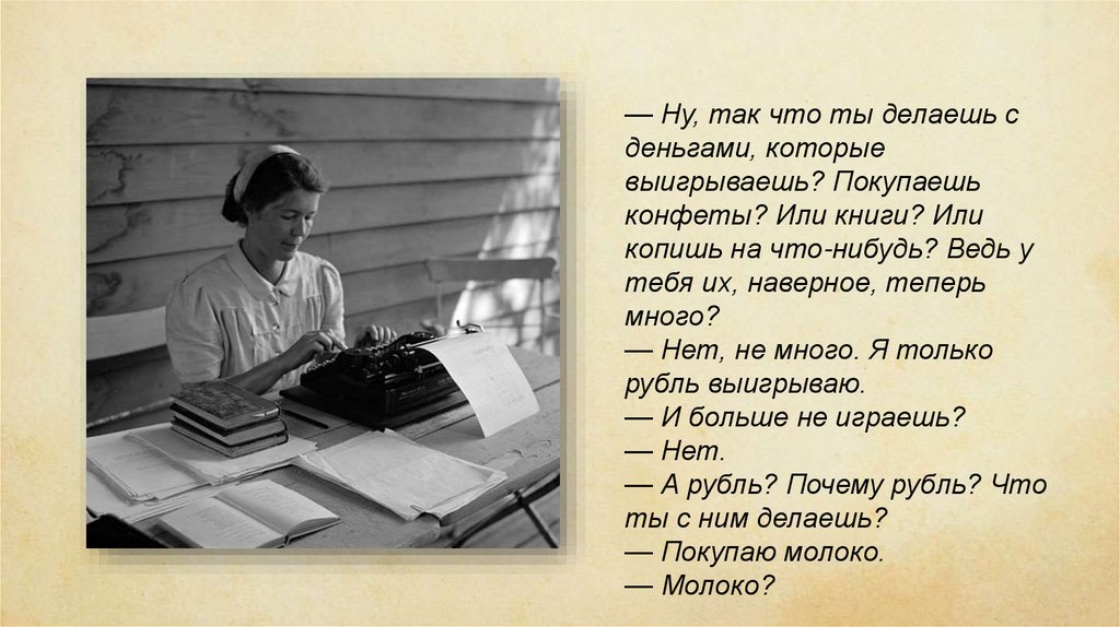 Она и не объясняла ничего директору. Почему? Он ничегоне понял бы — не такой он человек.