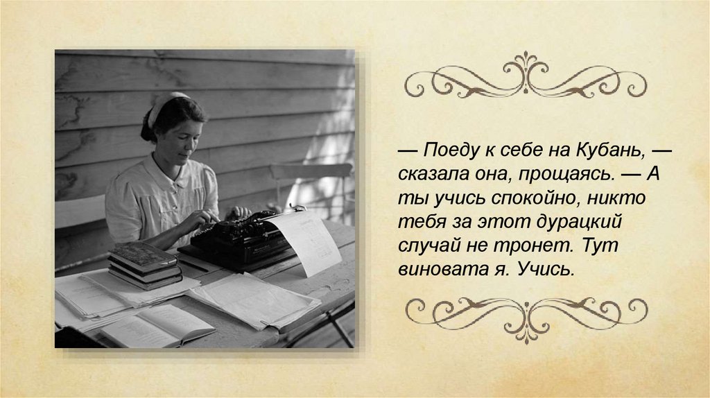 — Поеду к себе на Кубань, —сказала она, прощаясь. — А