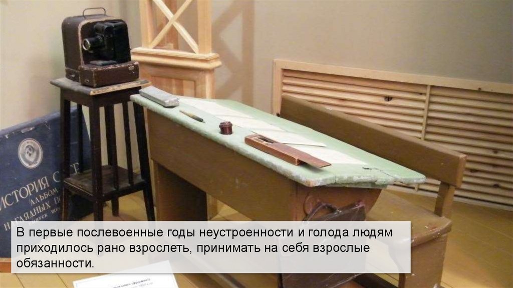 В первые послевоенные годы неустроенности и голода людямприходилось рано взрослеть, принимать на себя взрослые