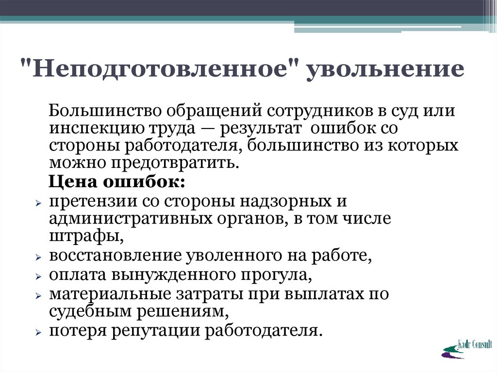 "Неподготовленное" увольнениеБольшинство обращений сотрудников в суд или