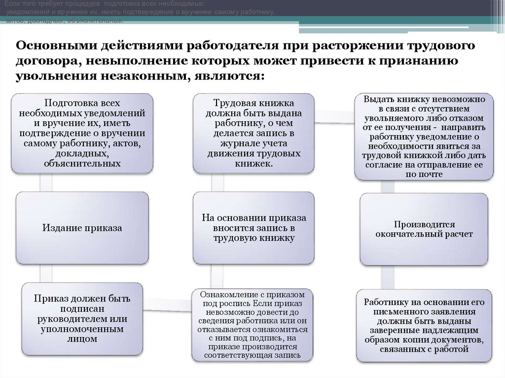 Если того требует процедура подготовка всех необходимых:уведомлений и вручение их, иметь подтверждение о вручении самому работнику,