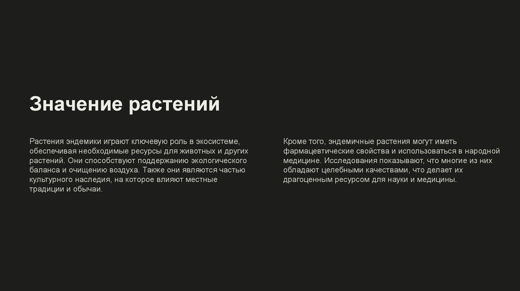 Значение растенийРастения эндемики играют ключевую роль в экосистеме,