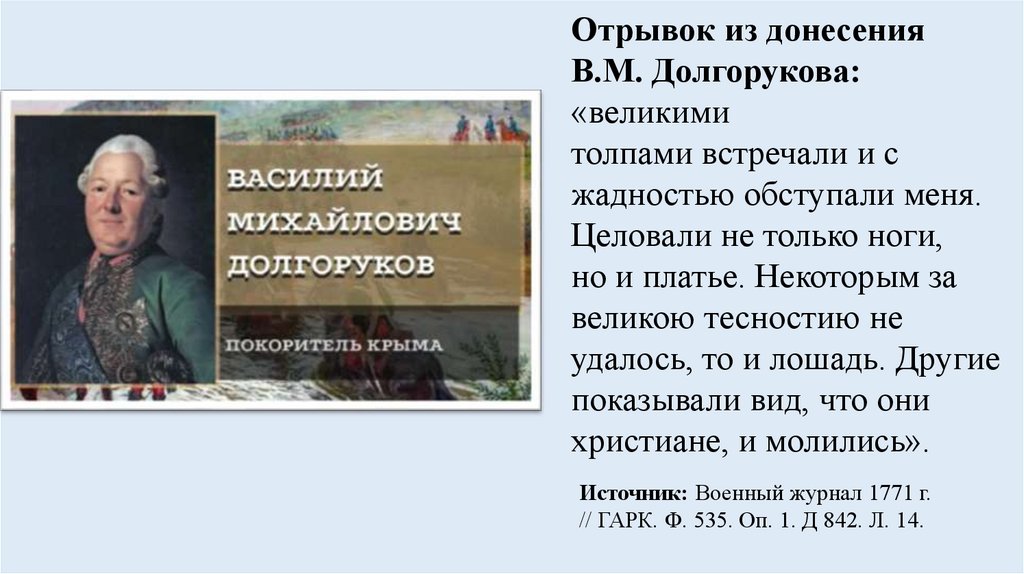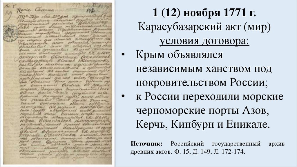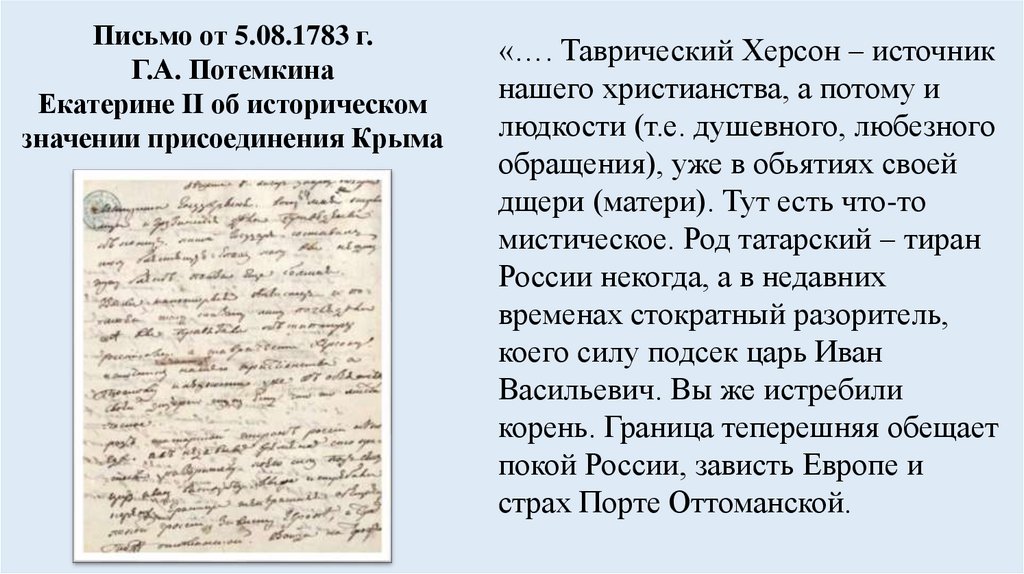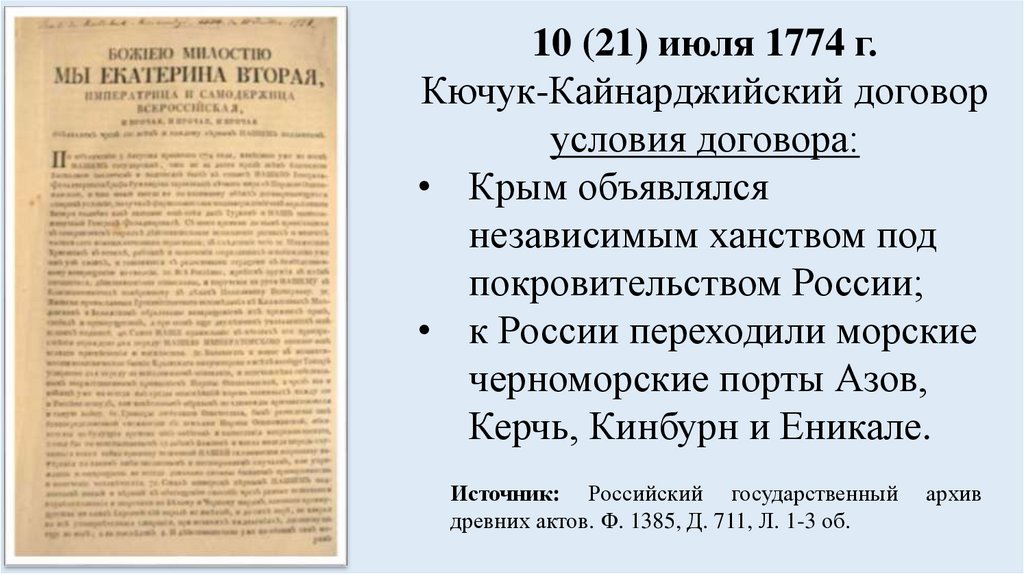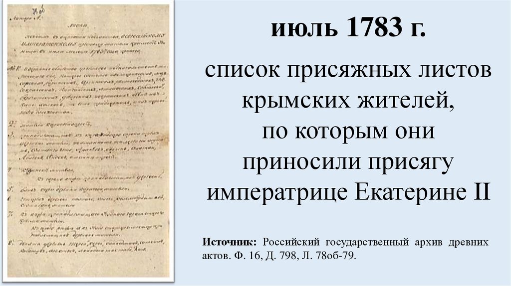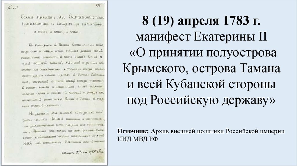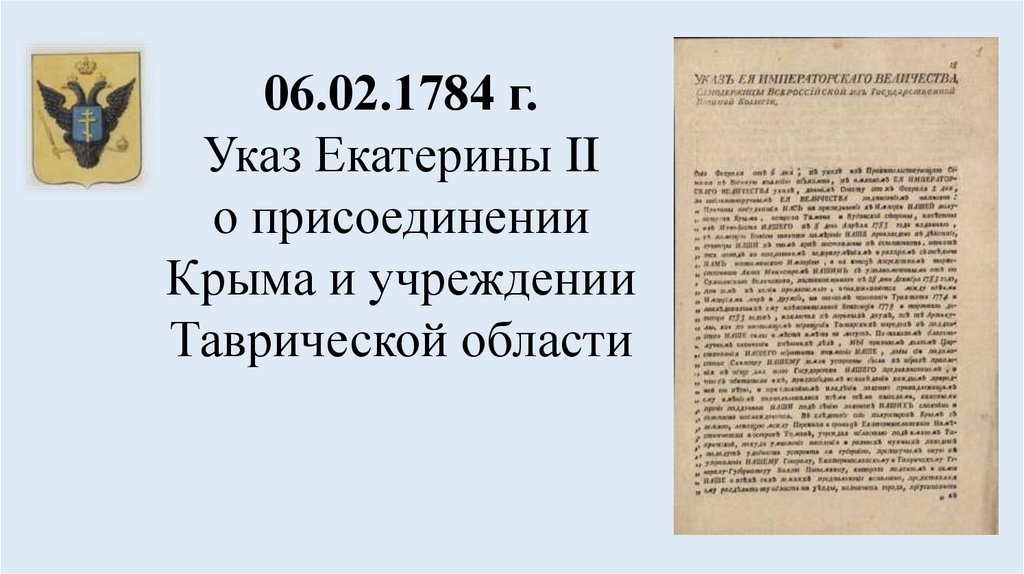 К 240-летию подписания Екатериной II манифеста о присоединении Крыма к России
