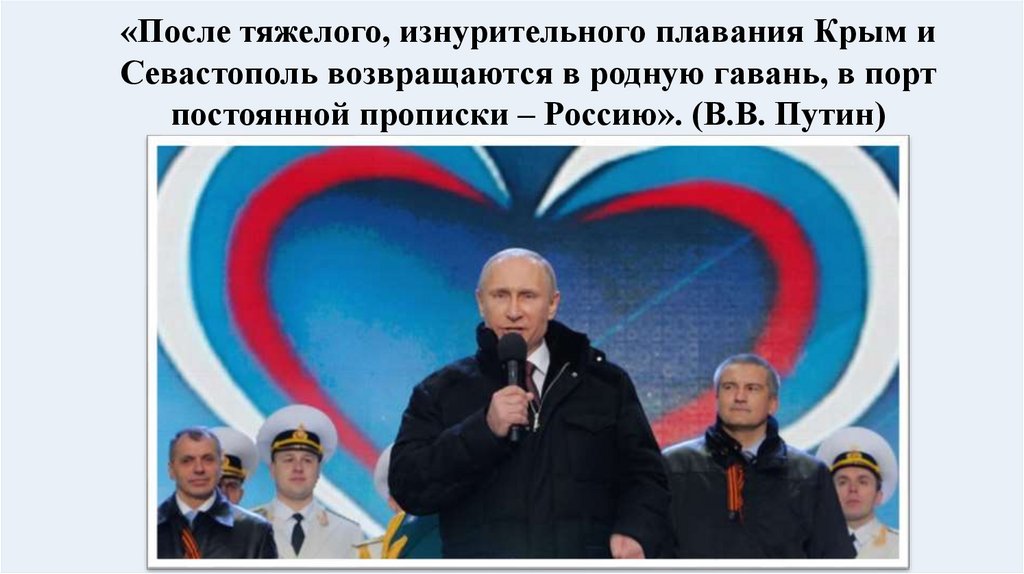«После тяжелого, изнурительного плавания Крым иСевастополь возвращаются в родную гавань, в порт