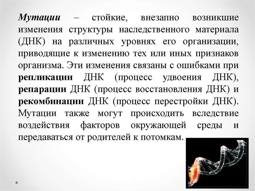 Мутации – стойкие, внезапно возникшиеизменения структуры наследственного материала