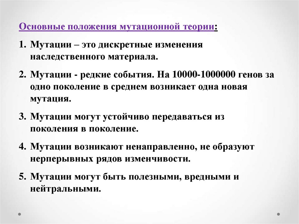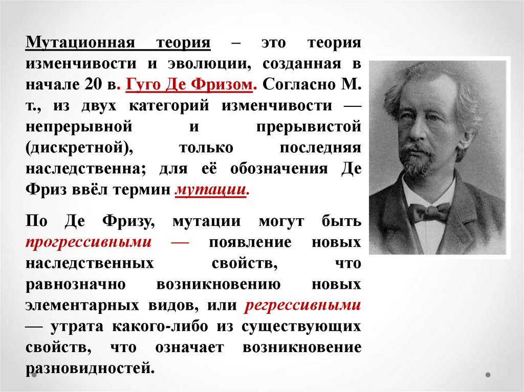 Мутационная теория – это теорияизменчивости и эволюции, созданная в
