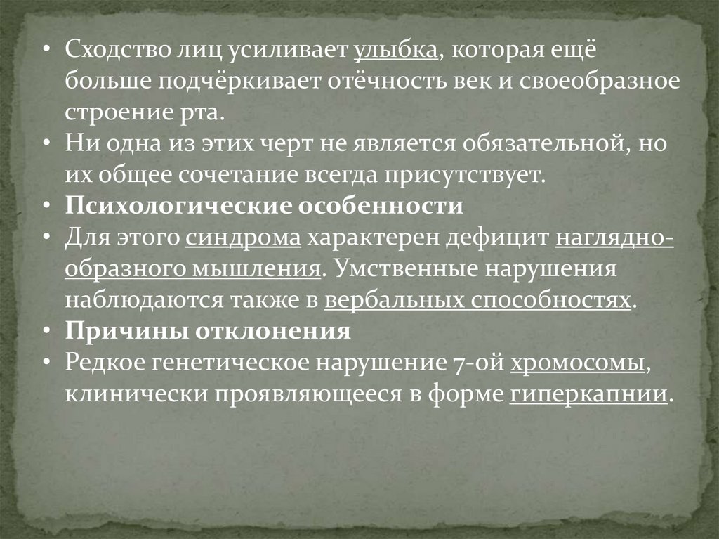 • Редкое генетическое нарушение 7-ой хромосомы,