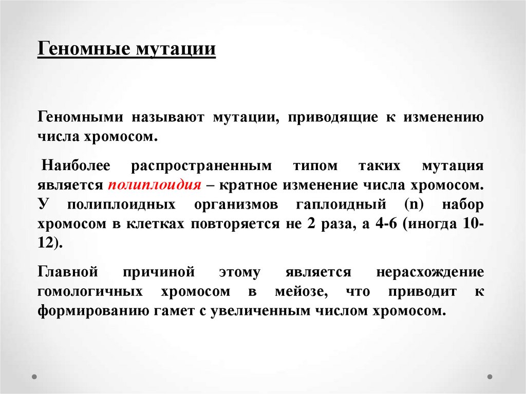 Геномные мутацииГеномными называют мутации, приводящие к изменению
