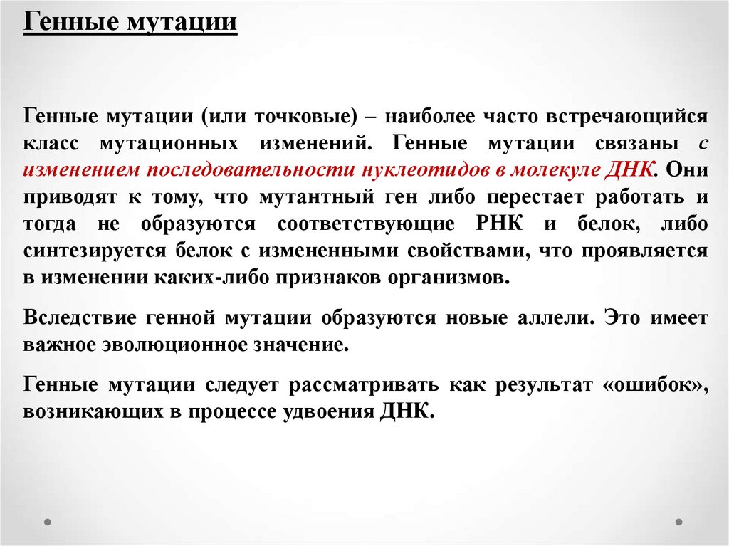 Генные мутацииГенные мутации (или точковые) – наиболее часто встречающийся