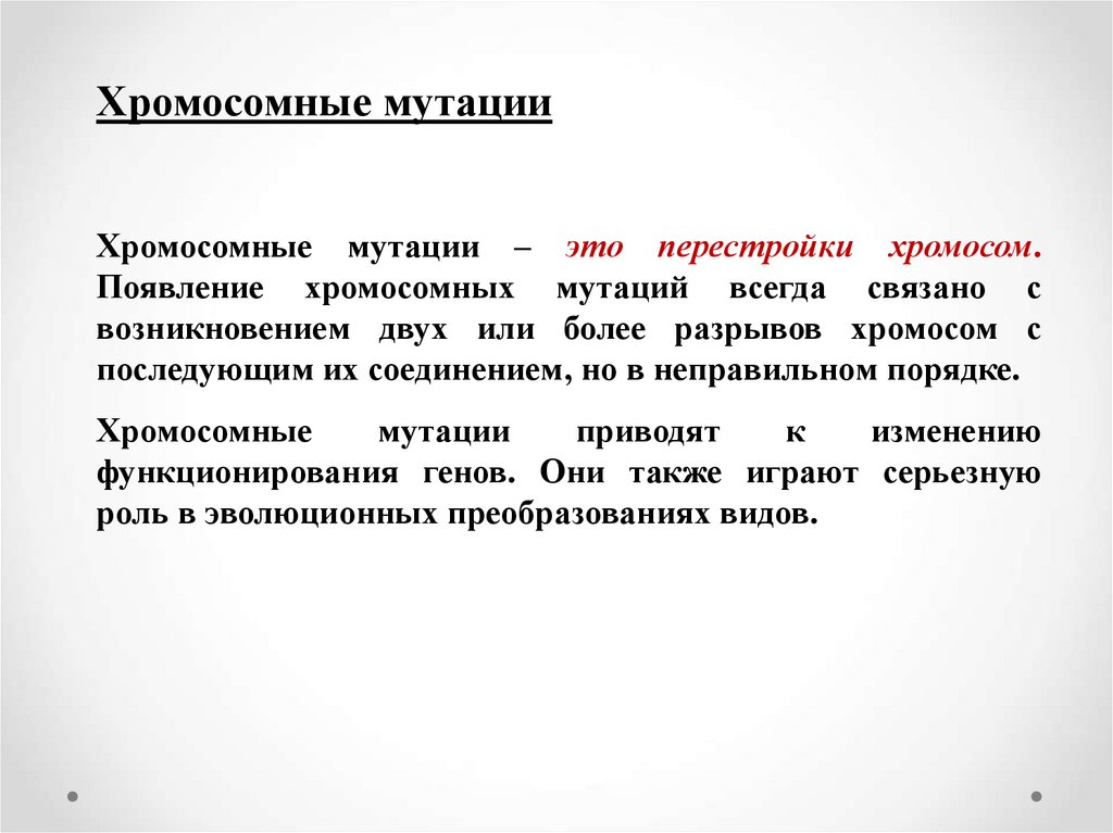 Хромосомные мутацииХромосомные мутации – это перестройки хромосом.