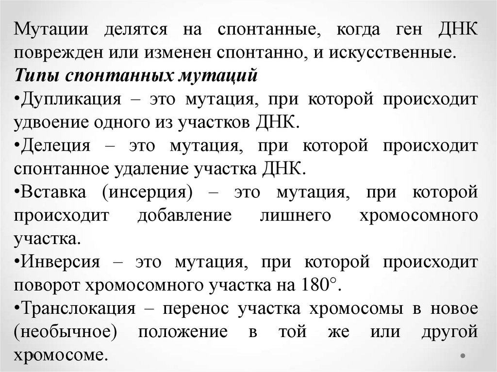 Мутации делятся на спонтанные, когда ген ДНКповрежден или изменен спонтанно, и искусственные.
