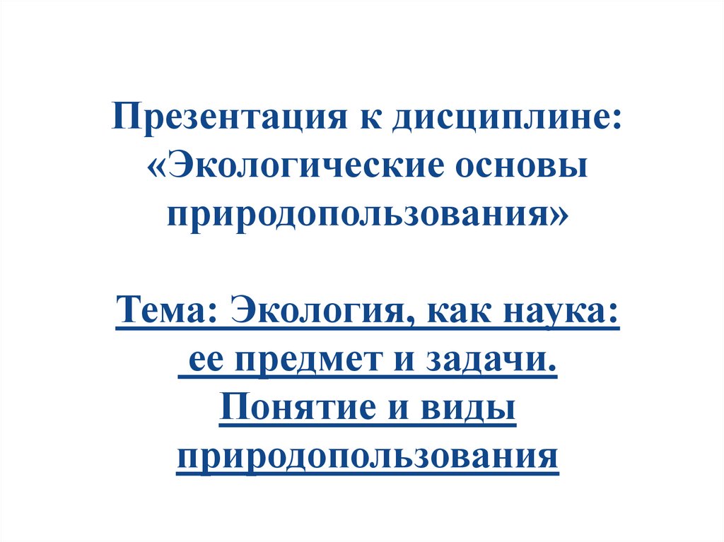 1. Презентация к дисциплине: «Экологические основы природопользования» Тема: Экология, как наука: ее предмет и задачи. Понятие и