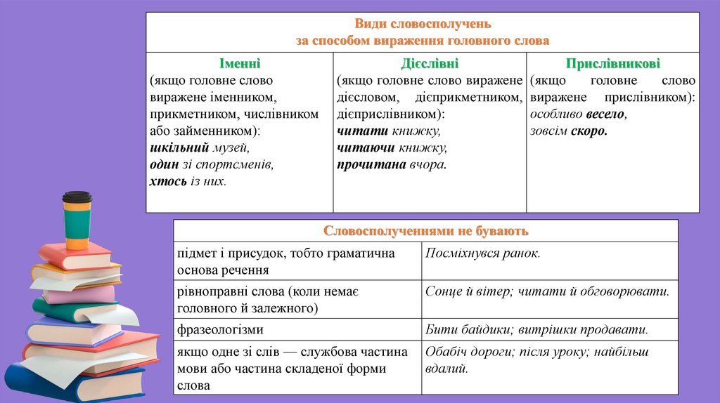 Види словосполученьза способом вираження головного слова
