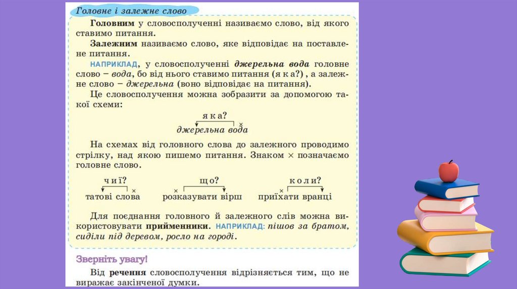 Словосполучення. Відмінність словосполучення від слова й речення. Головне й залежне слово в словосполученні