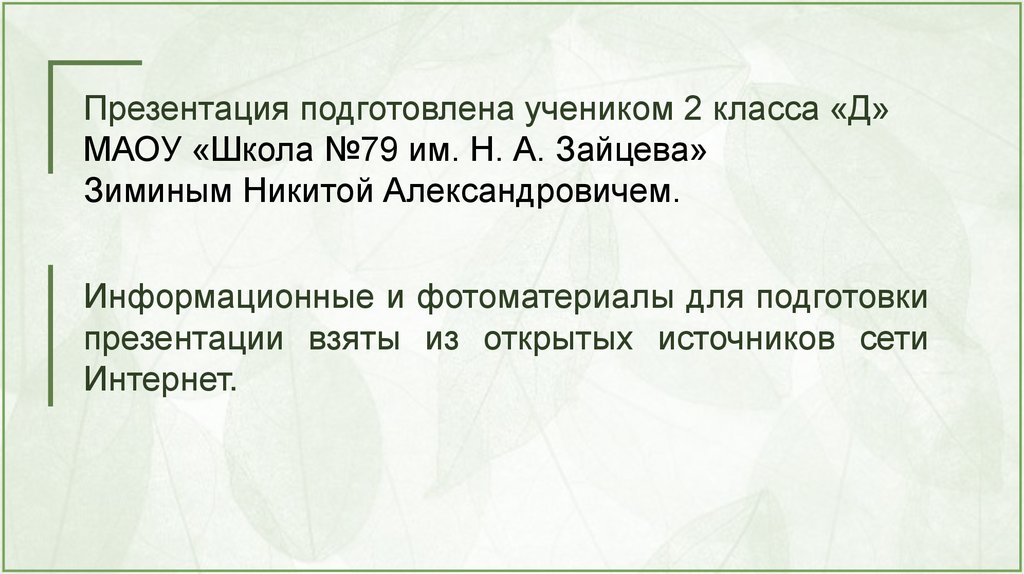 Презентация подготовлена учеником 2 класса «Д»МАОУ «Школа №79 им. Н. А. Зайцева»