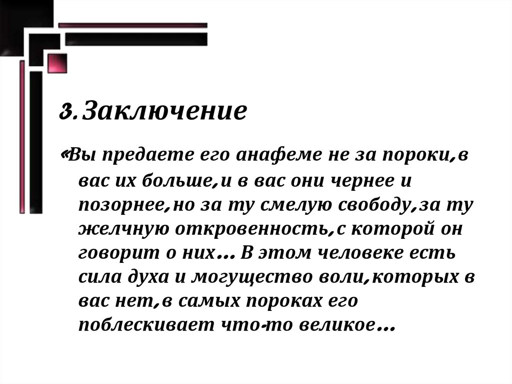 3. Заключение«Вы предаете его анафеме не за пороки, в