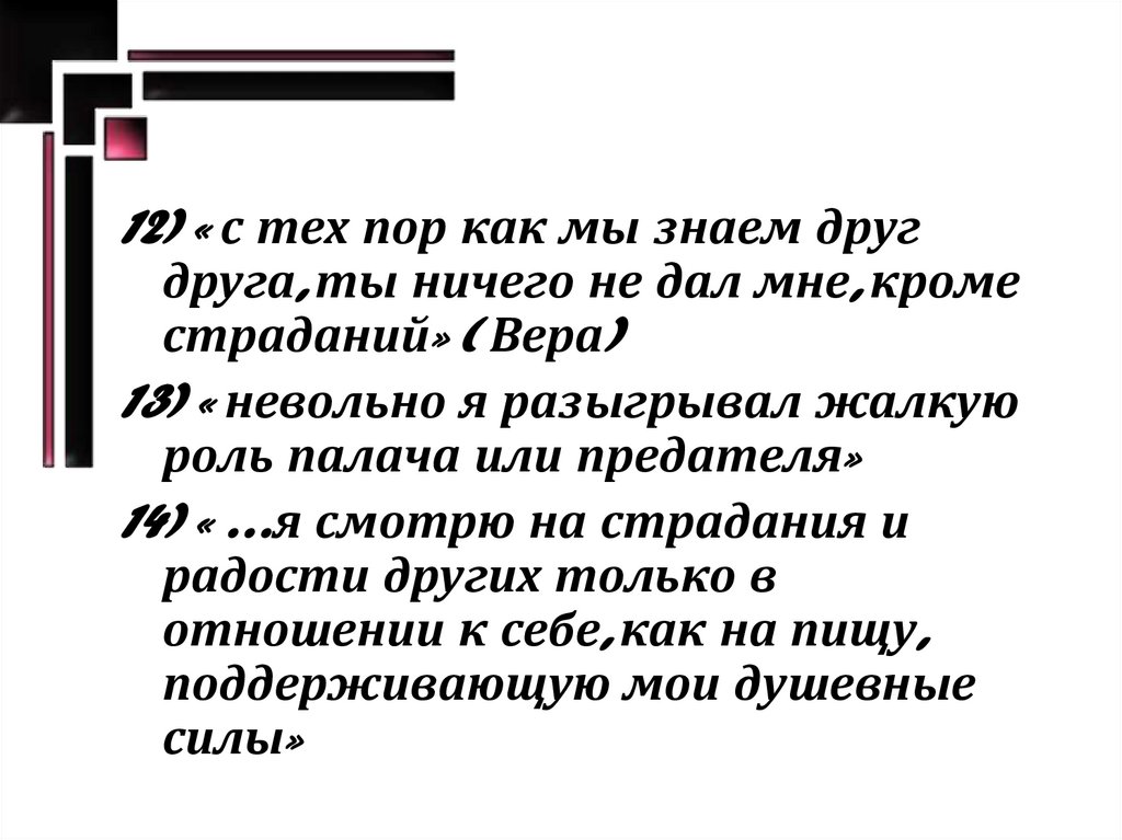 12) « с тех пор как мы знаем другдруга, ты ничего не дал мне, кроме