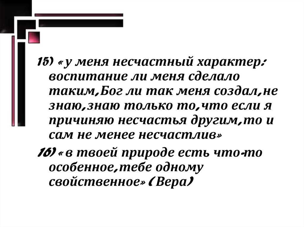 15) « у меня несчастный характер:воспитание ли меня сделало