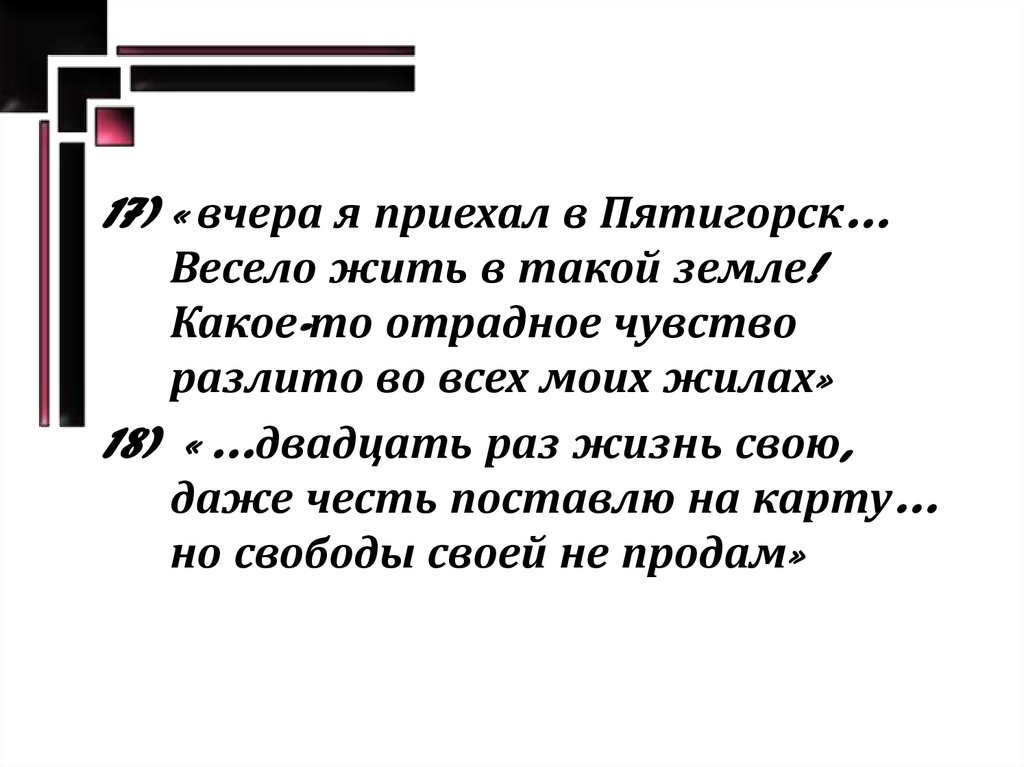 17) « вчера я приехал в Пятигорск…Весело жить в такой земле!