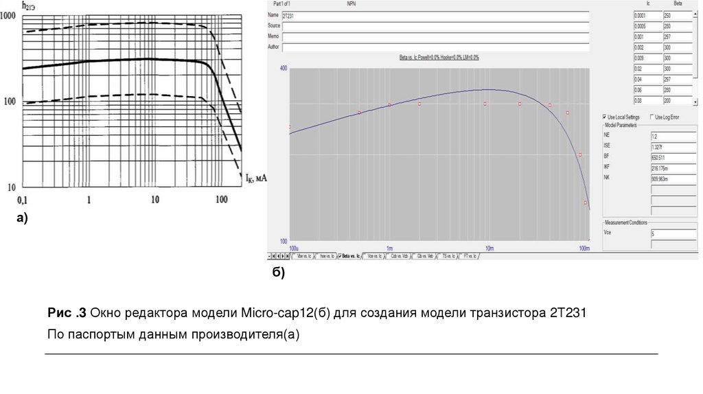 Рис .3 Окно редактора модели Micro-cap12(б) для создания модели транзистора 2Т231