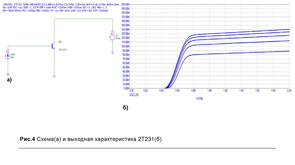 Рис.4 Схема(а) и выходная характеристика 2Т231(б)
