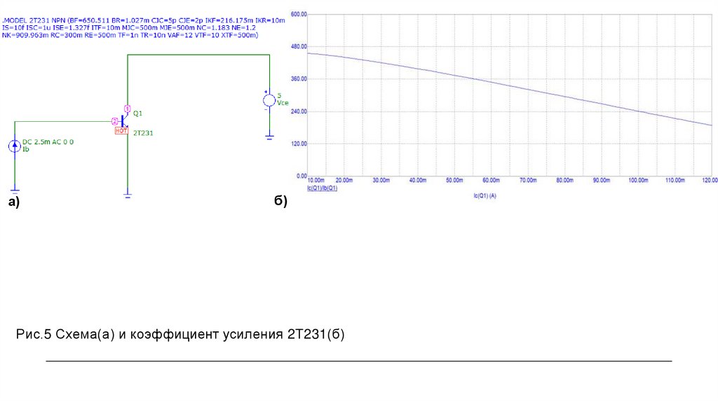 Рис.5 Схема(а) и коэффициент усиления 2Т231(б)