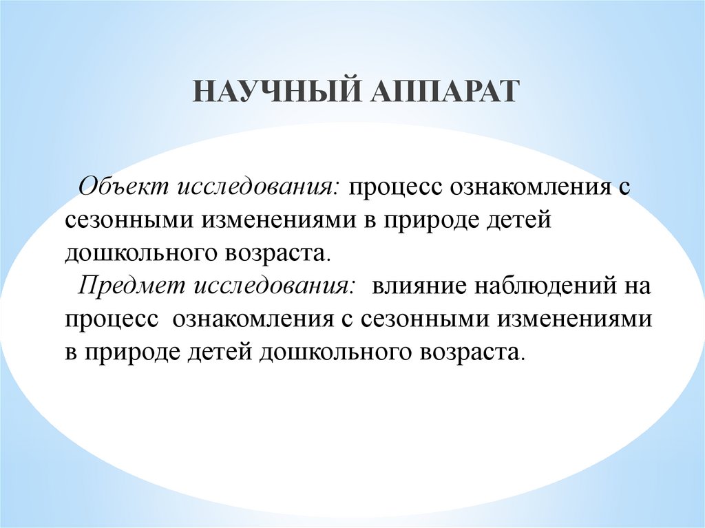 НАУЧНЫЙ АППАРАТОбъект исследования: процесс ознакомления с