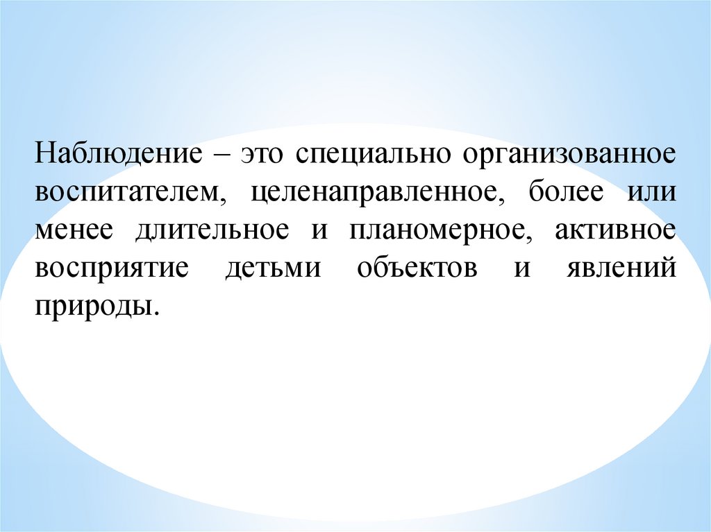 Наблюдение – это специально организованноевоспитателем, целенаправленное, более или