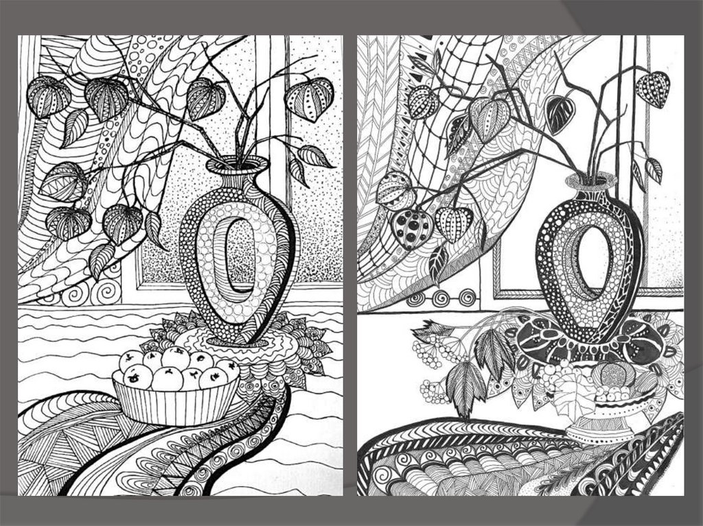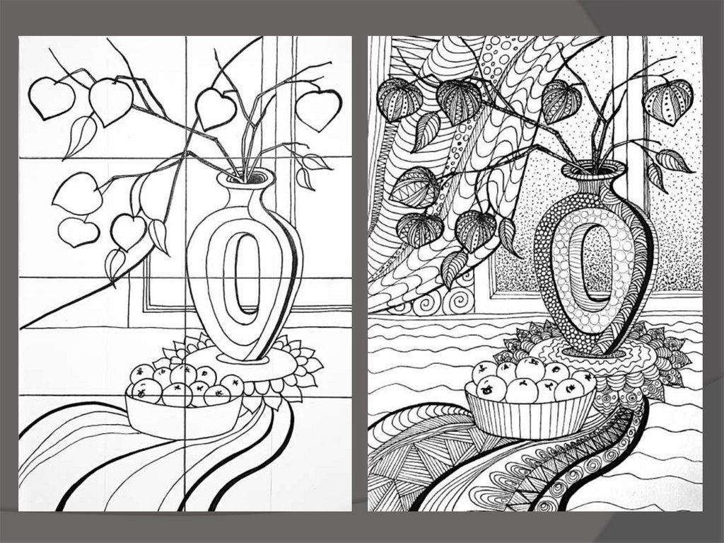 Выполнить графический натюрморт всобственной декоративной манере.