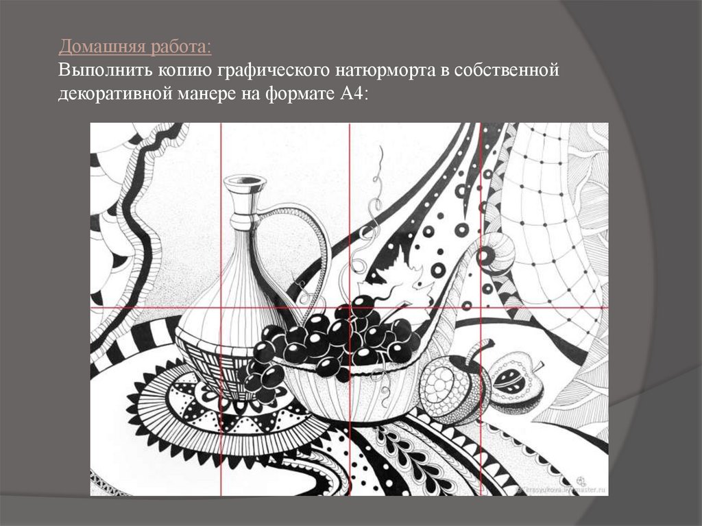 Домашняя работа:Выполнить копию графического натюрморта в собственной