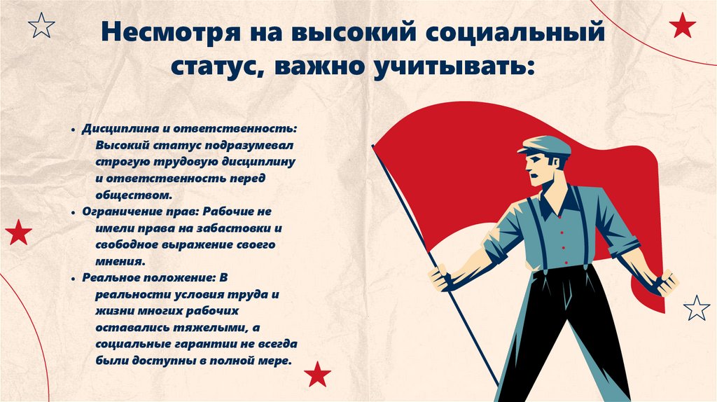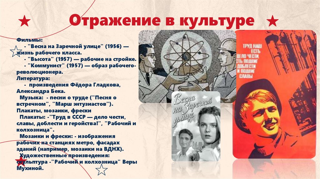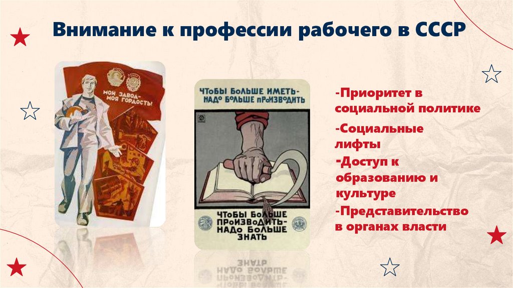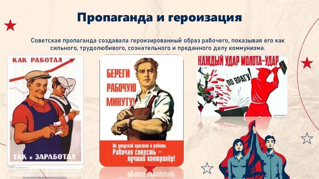 Пропаганда и героизацияСоветская пропаганда создавала героизированный образ рабочего, показывая его как