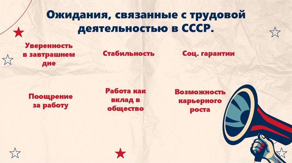 Ожидания, связанные с трудовойдеятельностью в СССР.