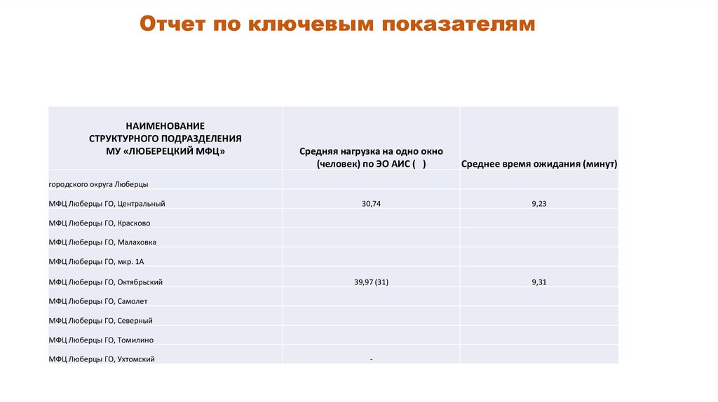 Отчет по ключевым показателямНАИМЕНОВАНИЕ