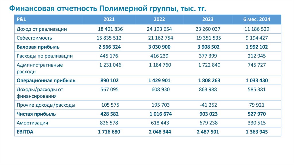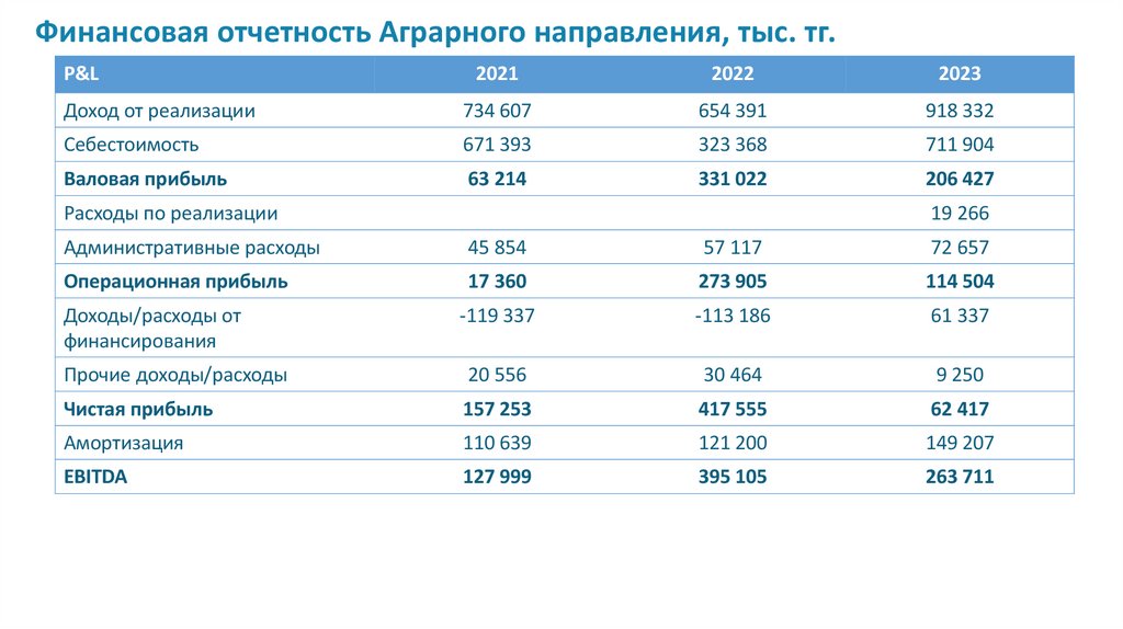 Финансовая отчетность Аграрного направления, тыс. тг.P&L
