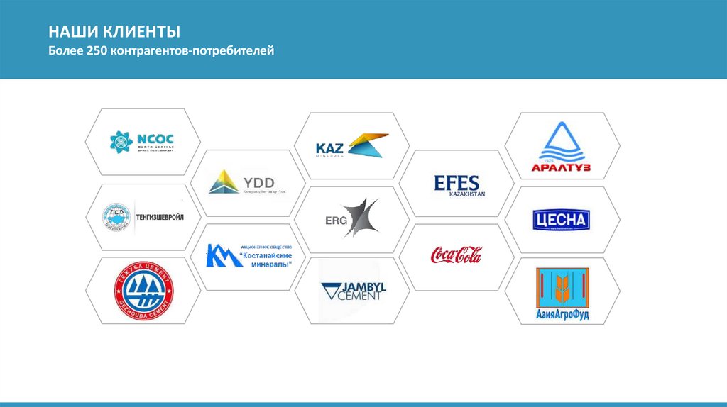 НАШИ КЛИЕНТЫБолее 250 контрагентов-потребителей