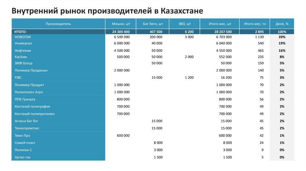 Внутренний рынок производителей в КазахстанеПроизводитель