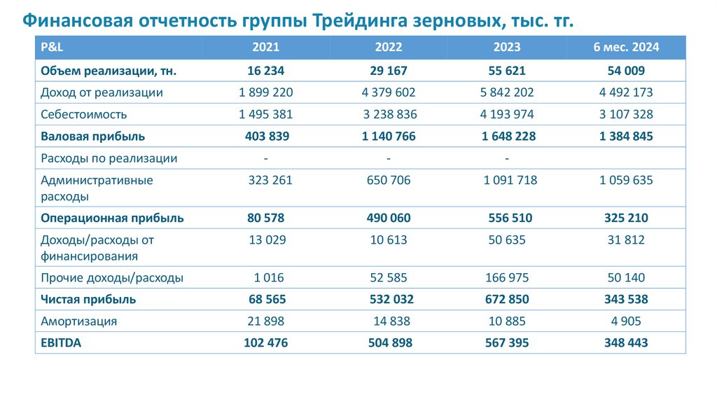 Финансовая отчетность группы Трейдинга зерновых, тыс. тг.P&L
